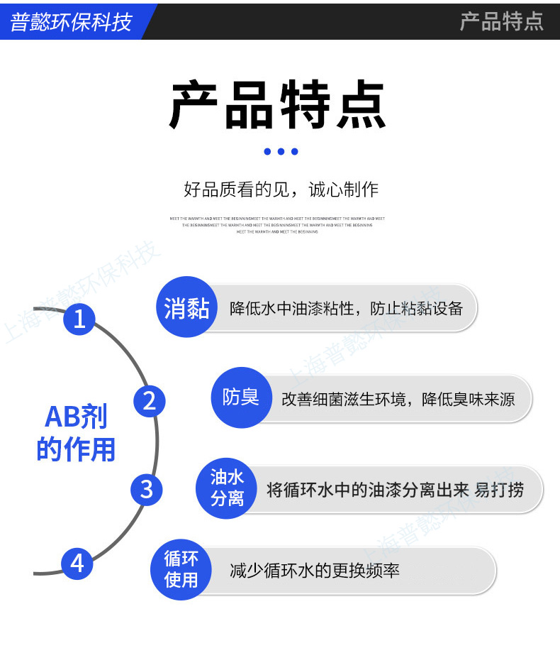 3、噴漆量多少是AB劑使用量的重要數(shù)據(jù),前期可按常規(guī)用量添加,可以觀察漆渣凝固上浮的狀態(tài),若水質(zhì)不清或漆渣上浮不完全,則可以補(bǔ)加AB劑。